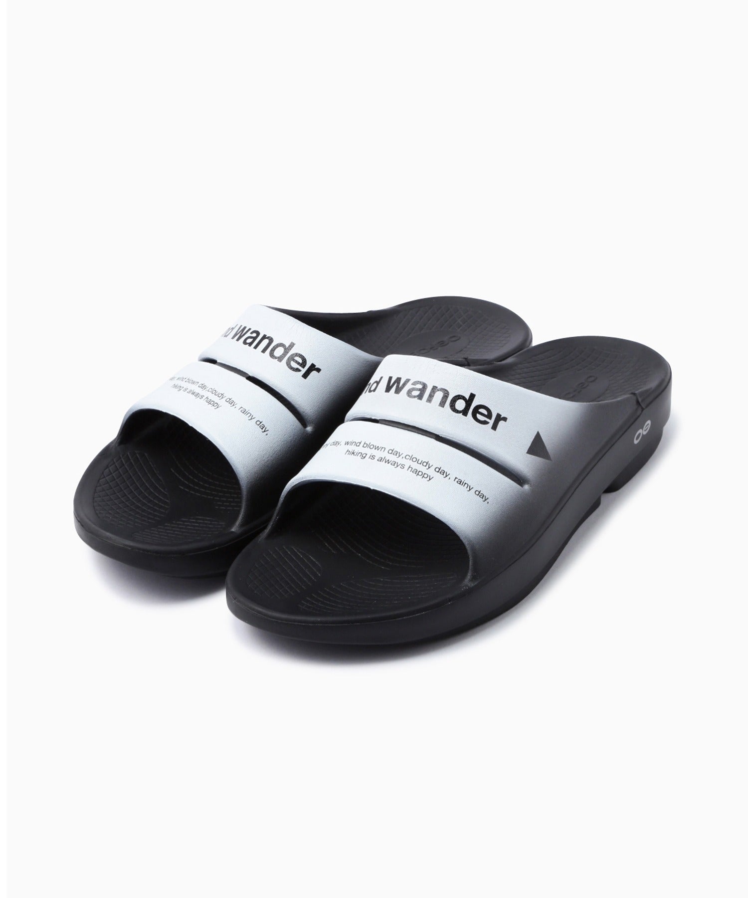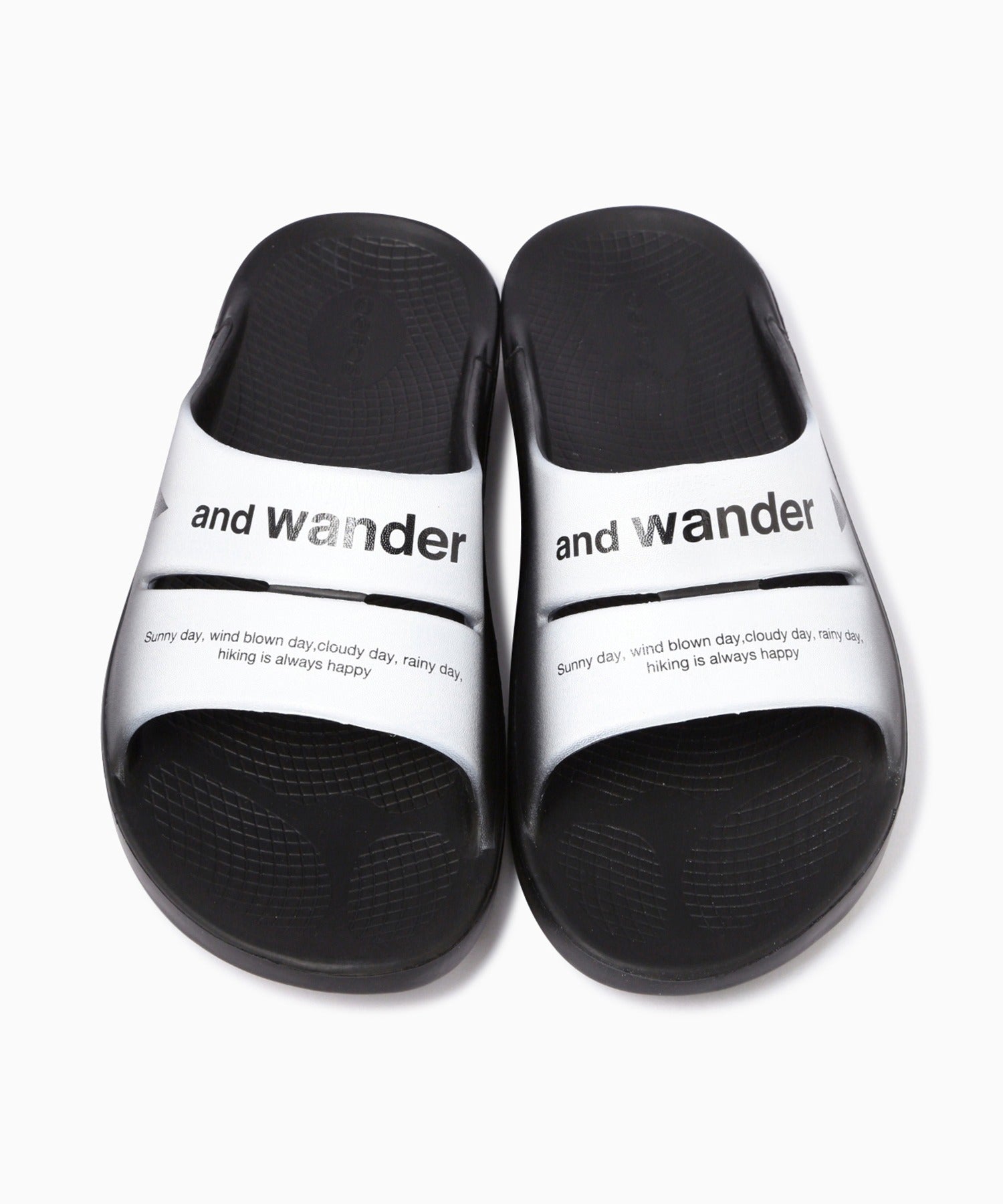 アッパーにand wanderのグラフィックをのせたコラボレーション仕様スライドサンダル