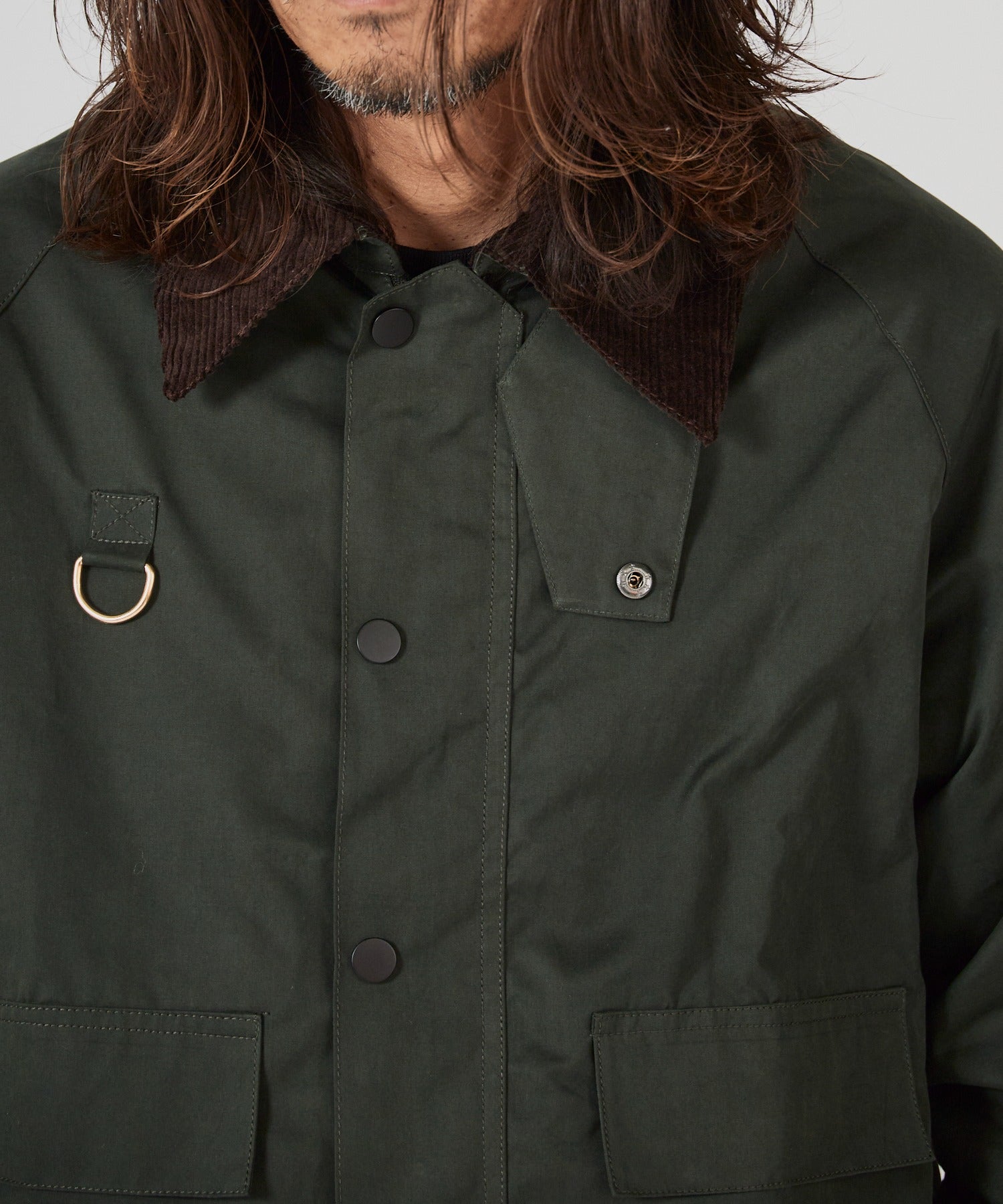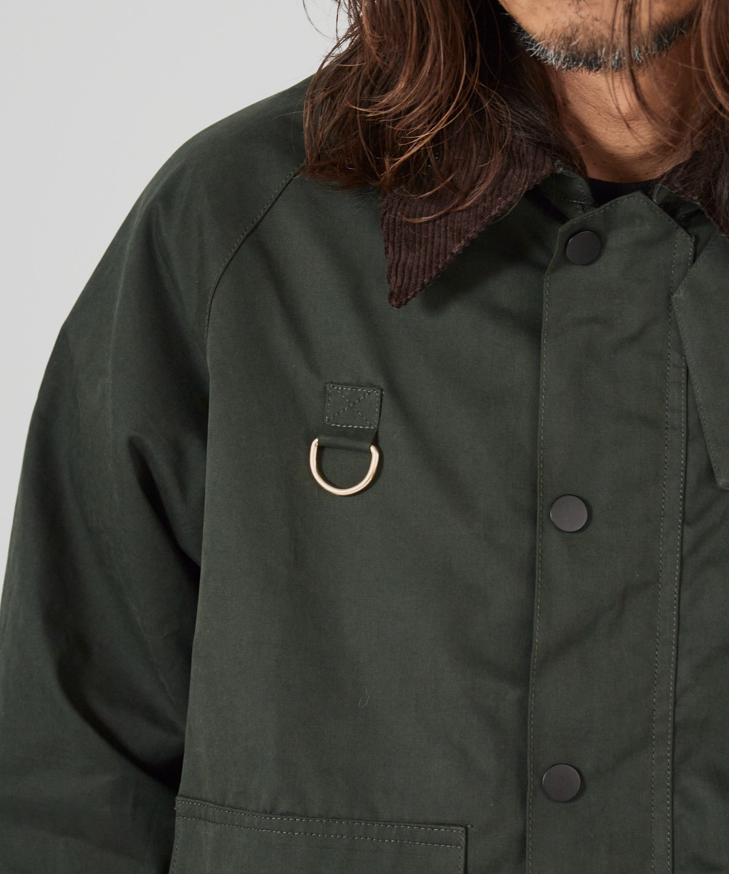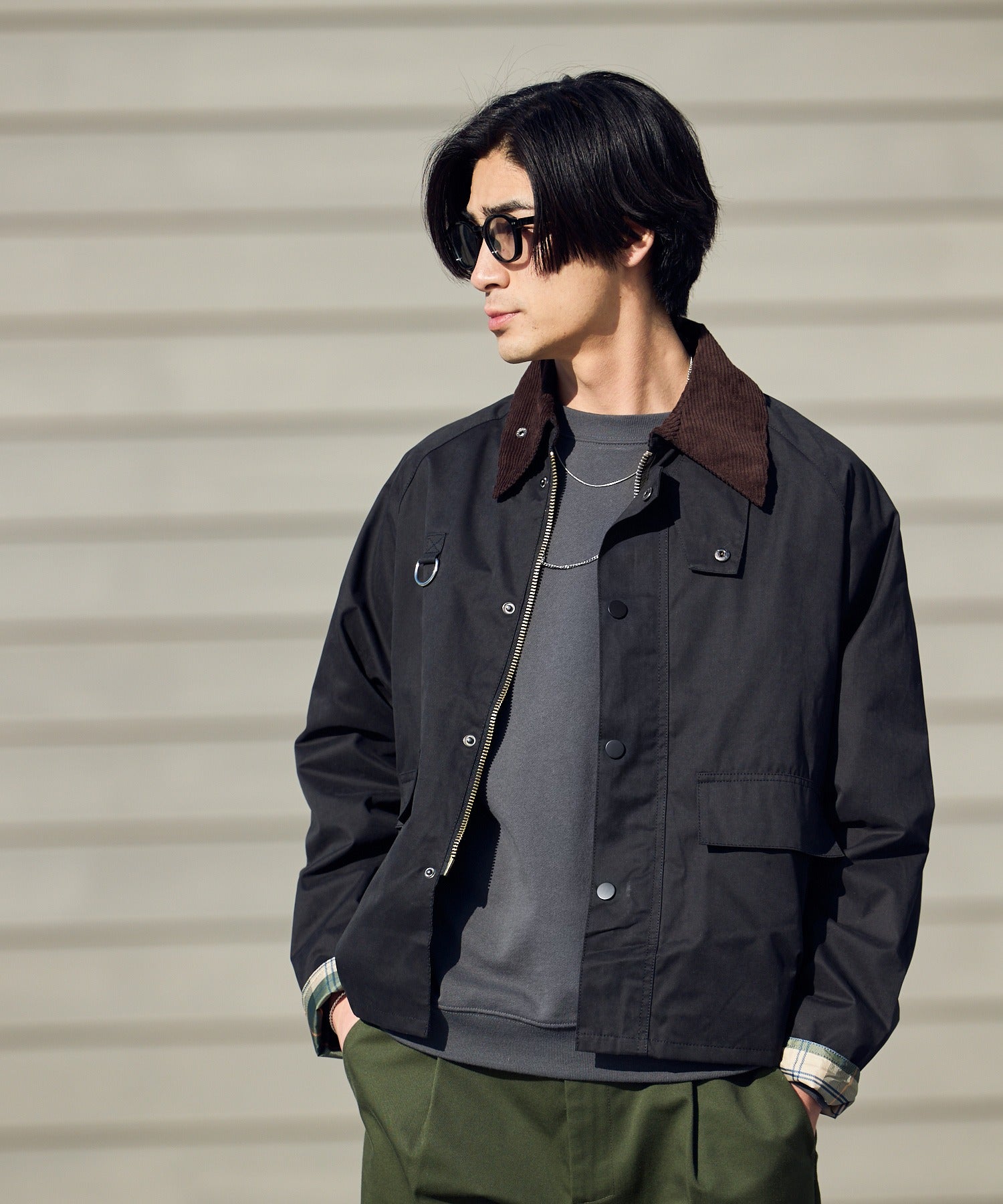 襟元はコーデュロイ生地をドッキングしており、トレンド感のある仕上がりとなっています。