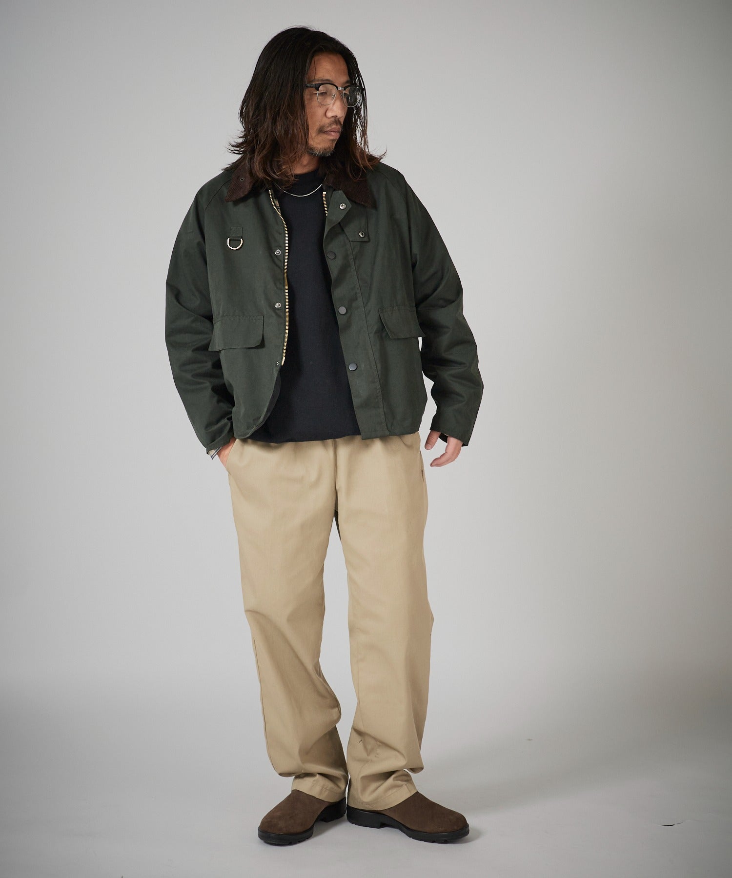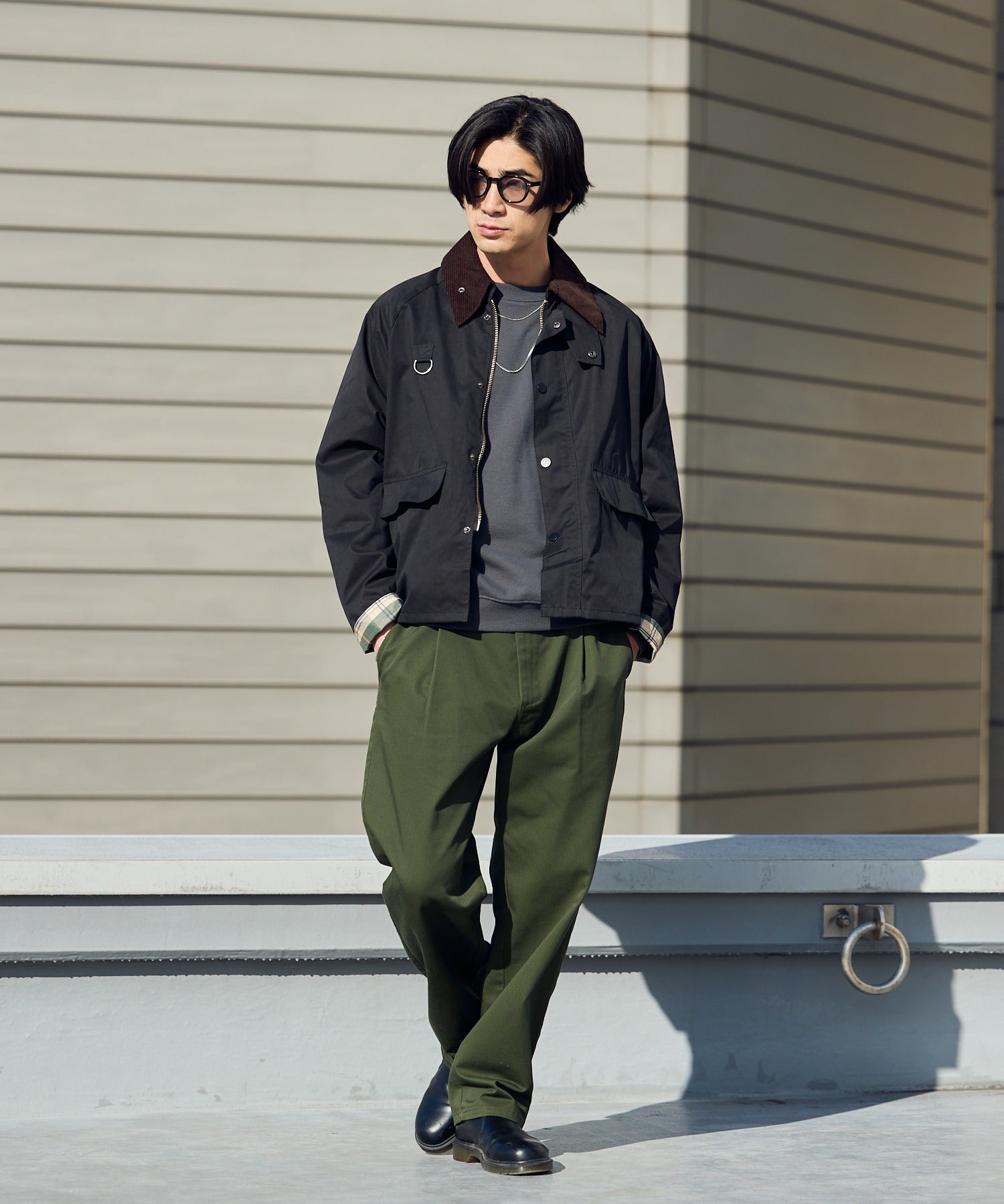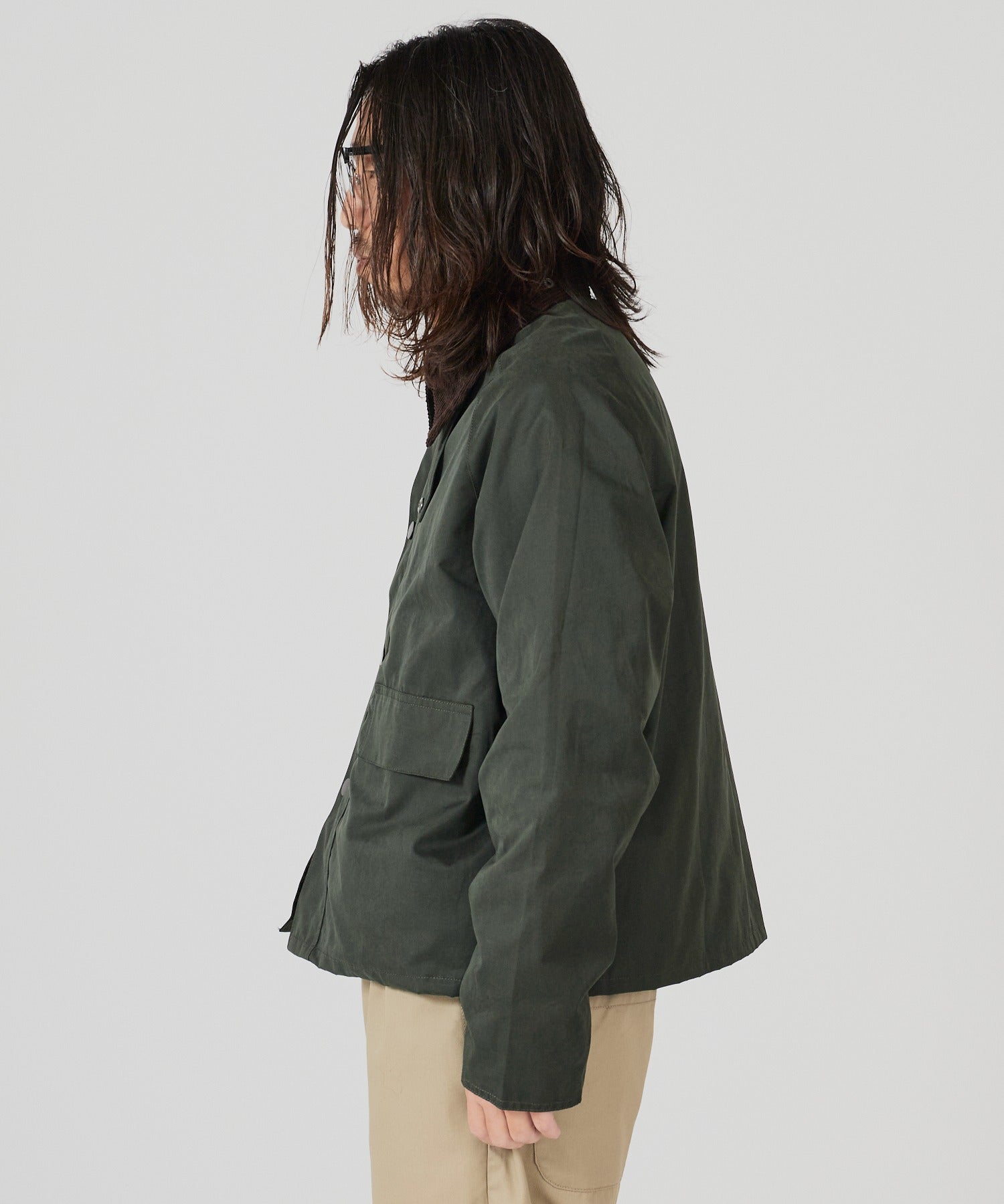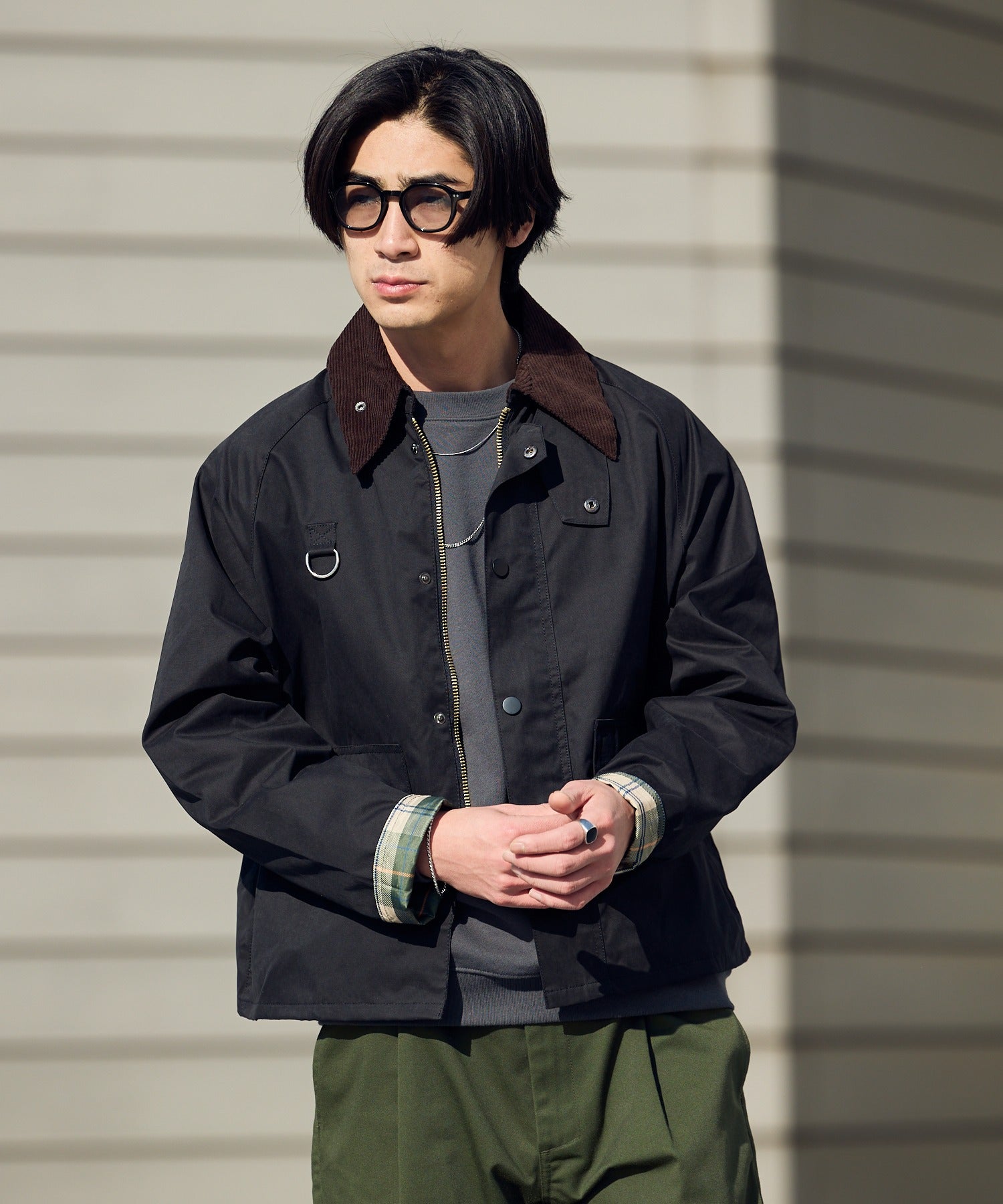襟元はコーデュロイ生地をドッキングしており、トレンド感のある仕上がりとなっています。