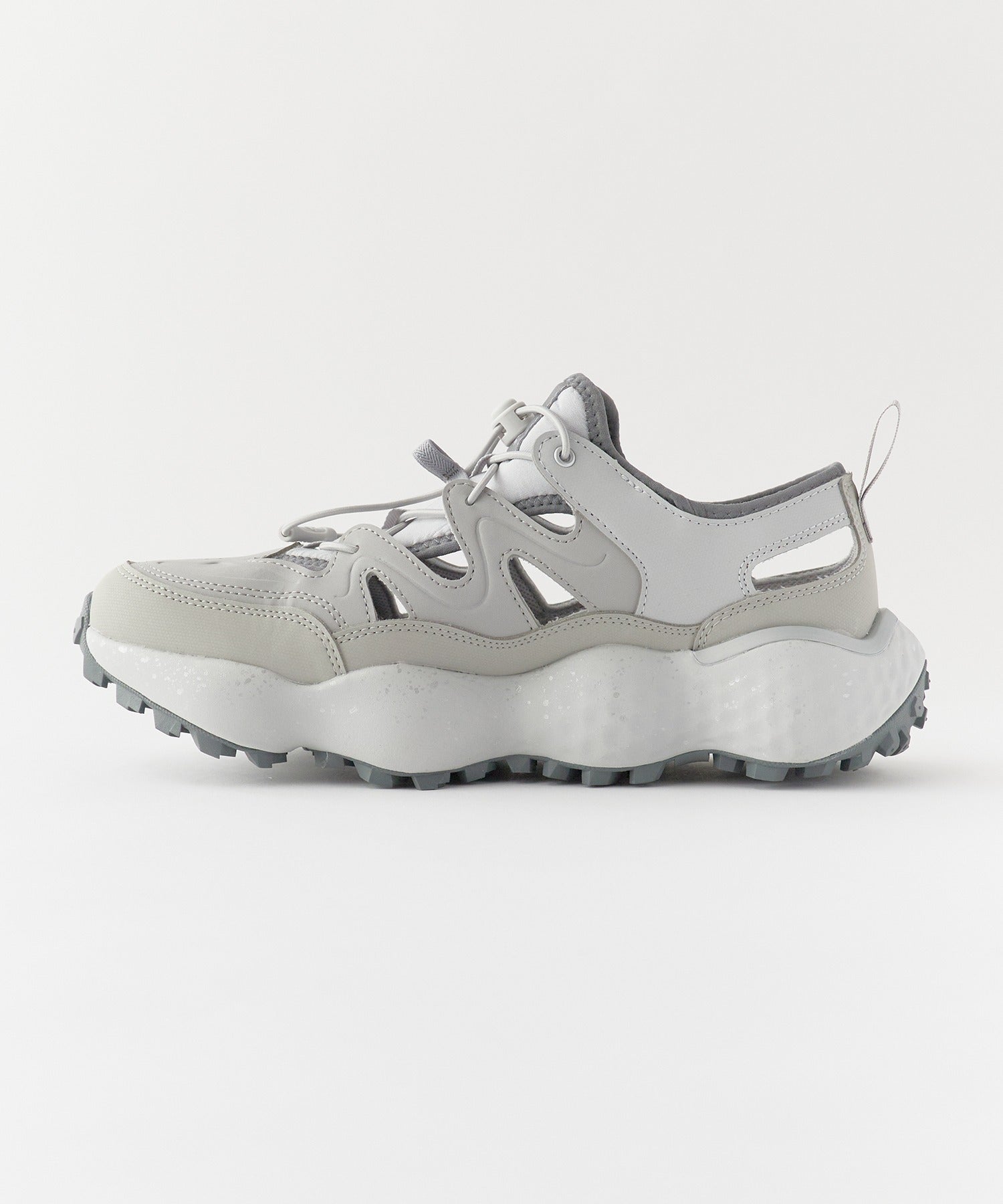 波打つような肉厚ソールがアクセントを演出します。