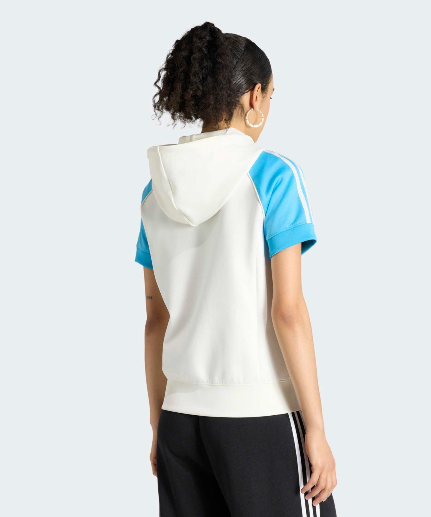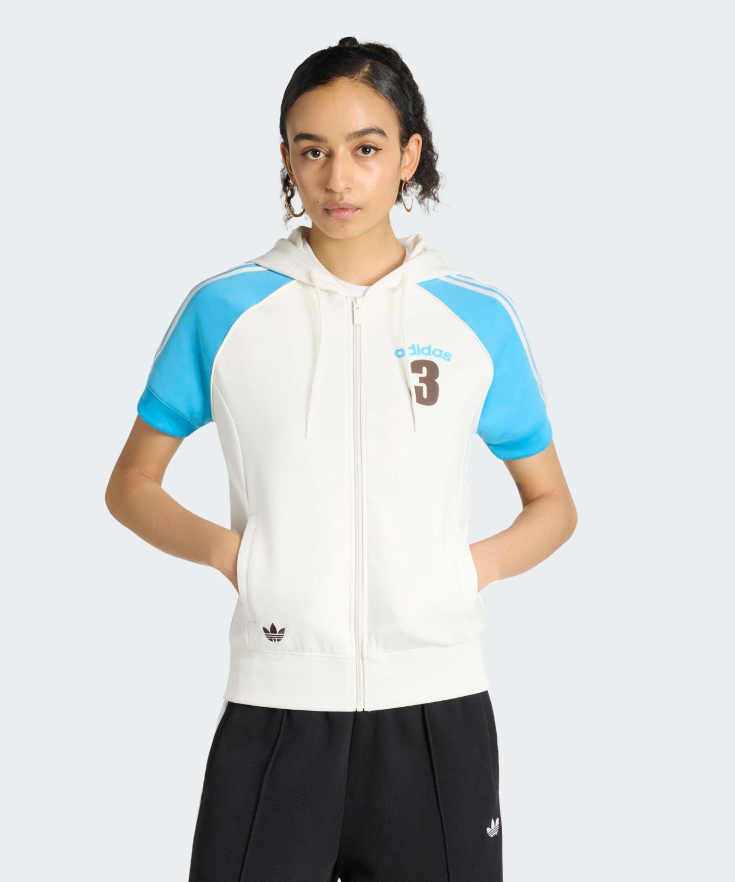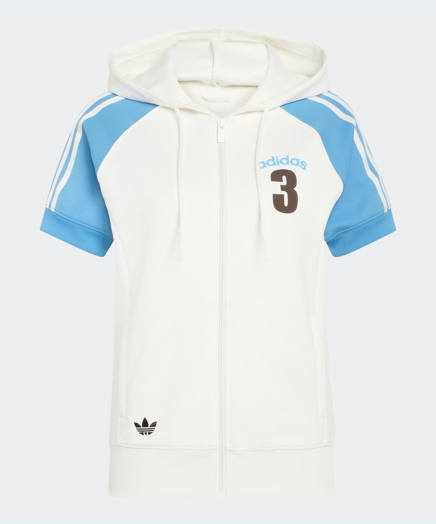 胸元にはエンボス加工を施したブランドネームと裾付近にはトレフォイルロゴを配しています。