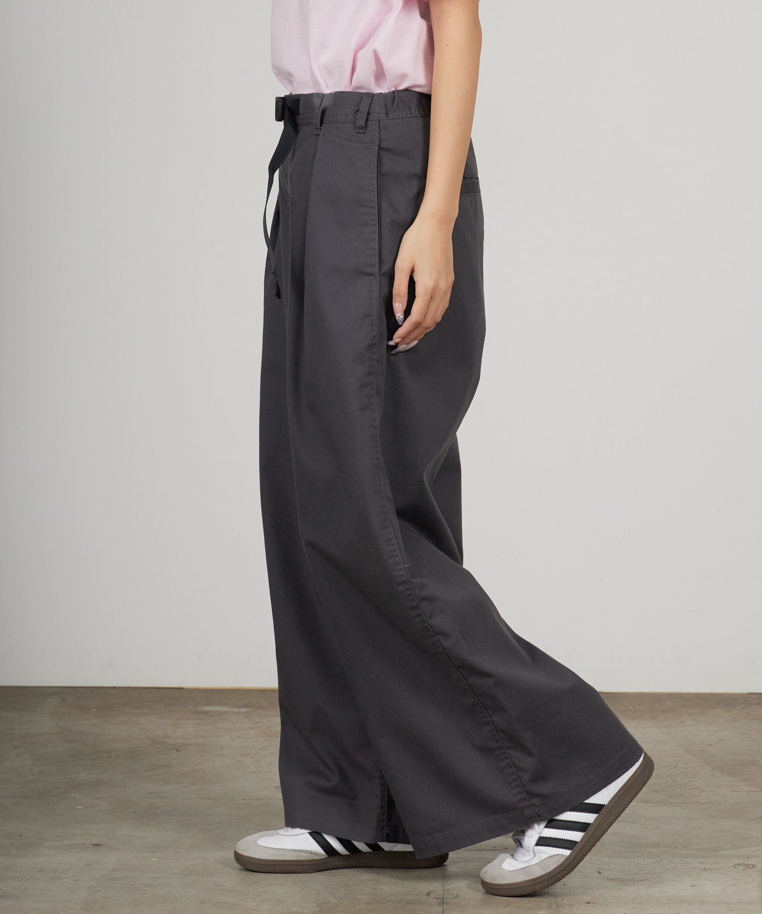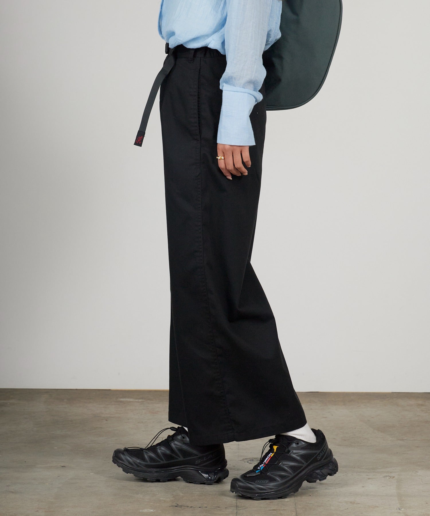 ウエストにはGramicci特有の片手のみで開け閉めできるウェビングベルトを内蔵。