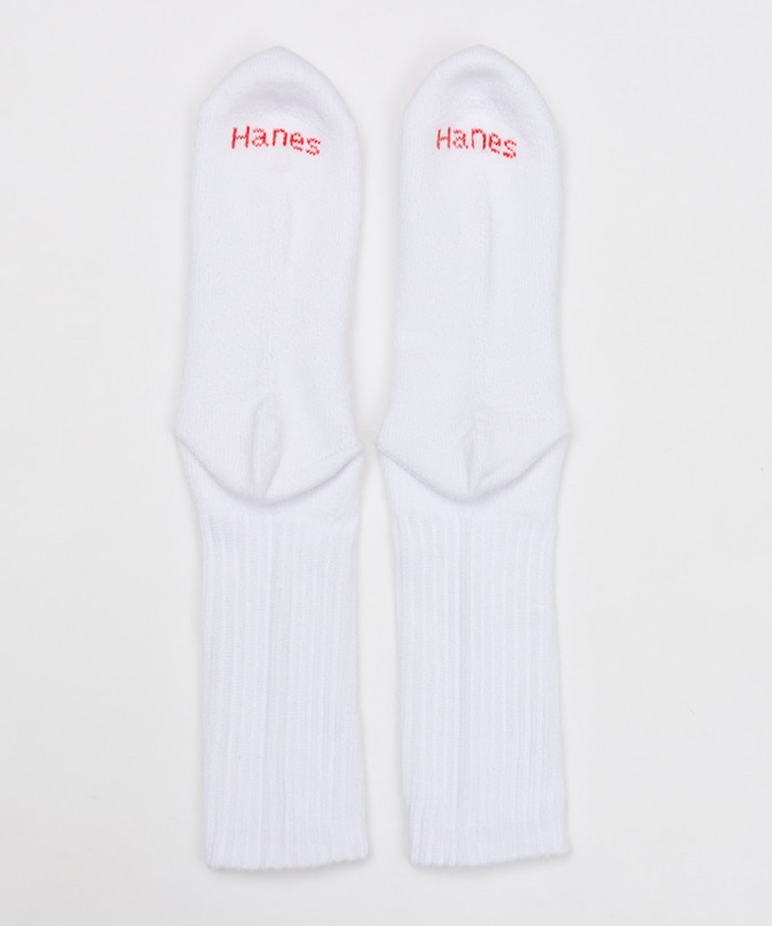 足裏にさり気なくアクセントカラーで「Hanes(ヘインズ)」と入れています。