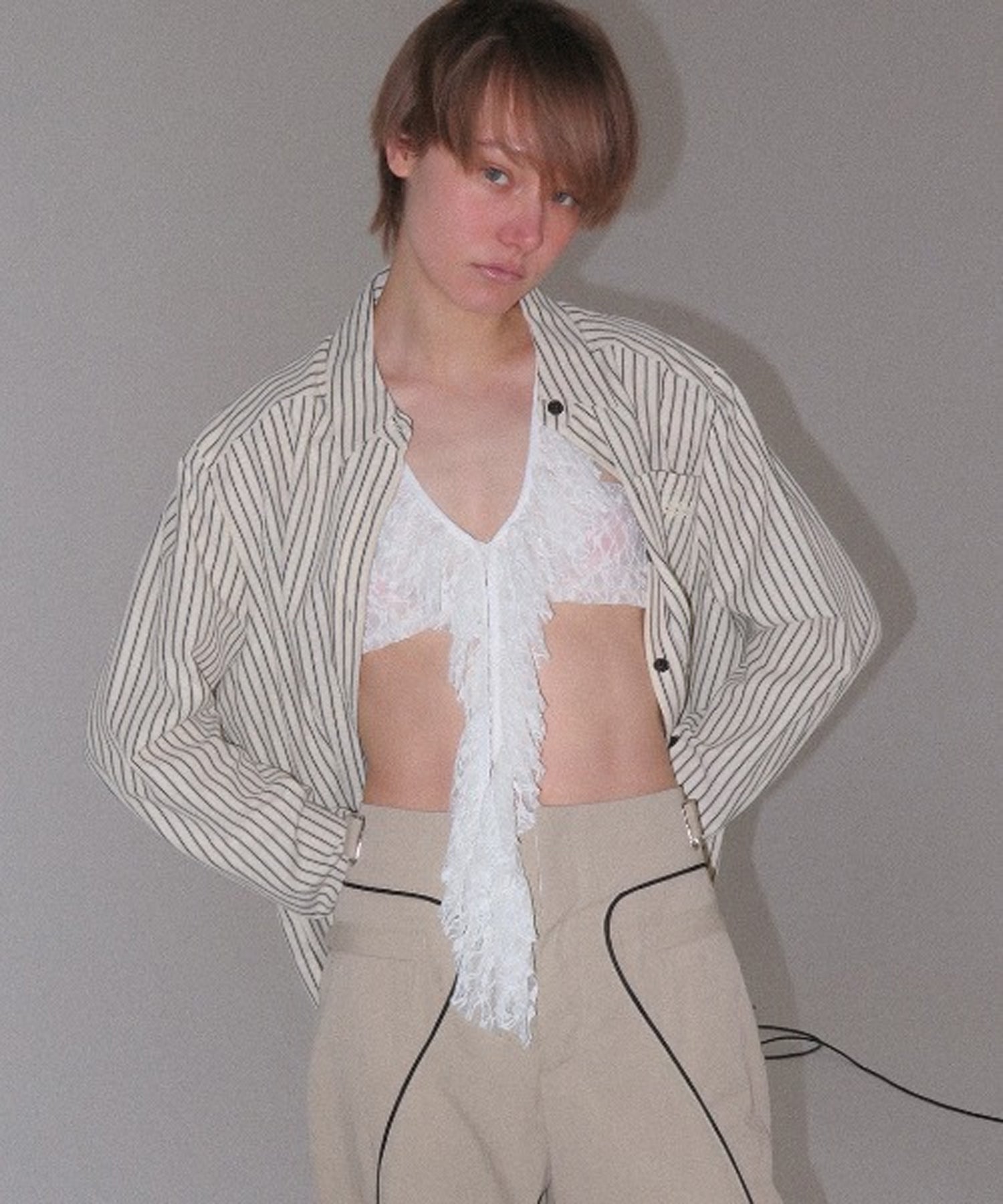 薄くて軽いコットンポリ素材を使用したストライプシャツ。