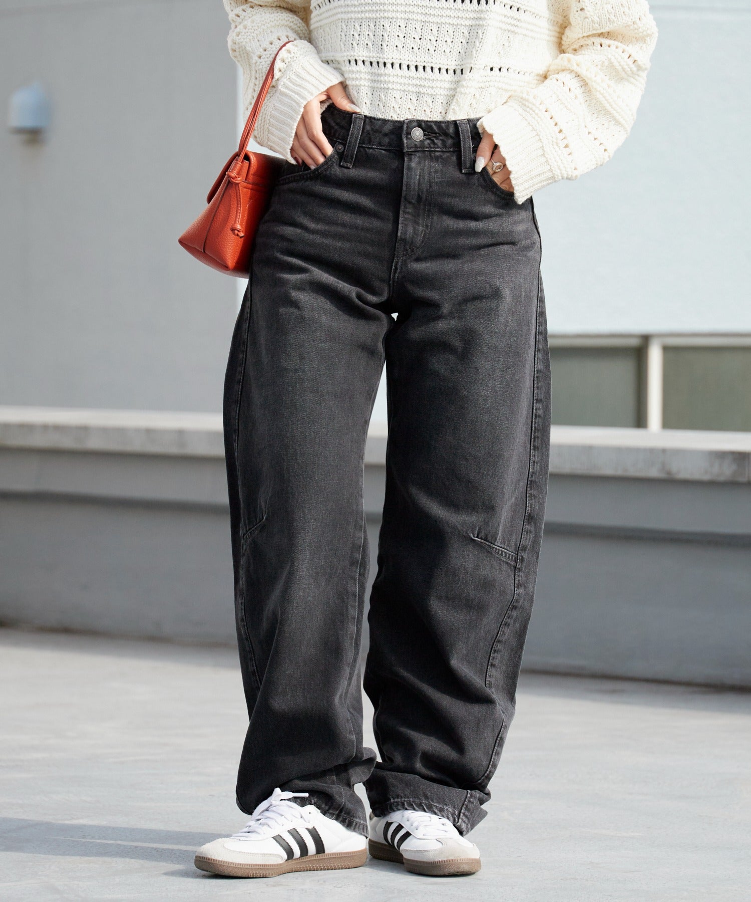 ゆるっとカーブを描くバギーダッドバレルシルエットは、トレンド感を演出してくれます。