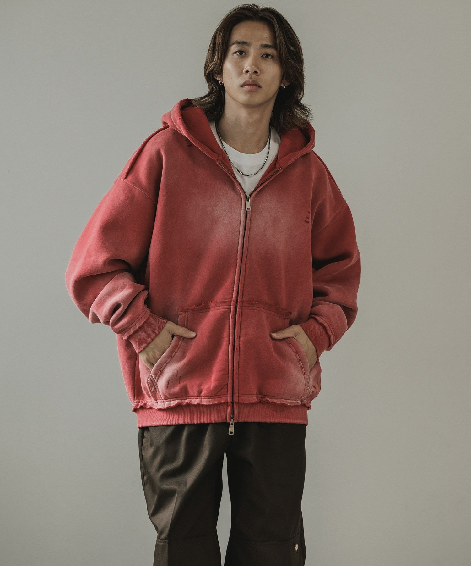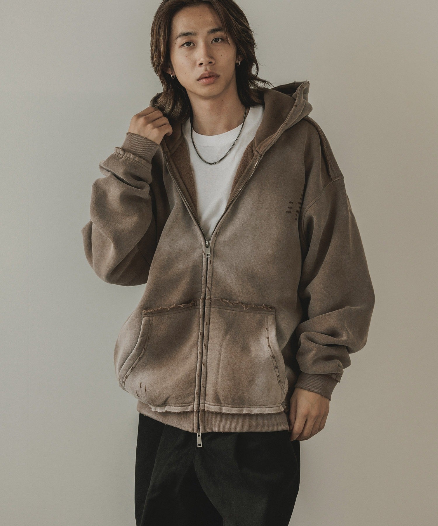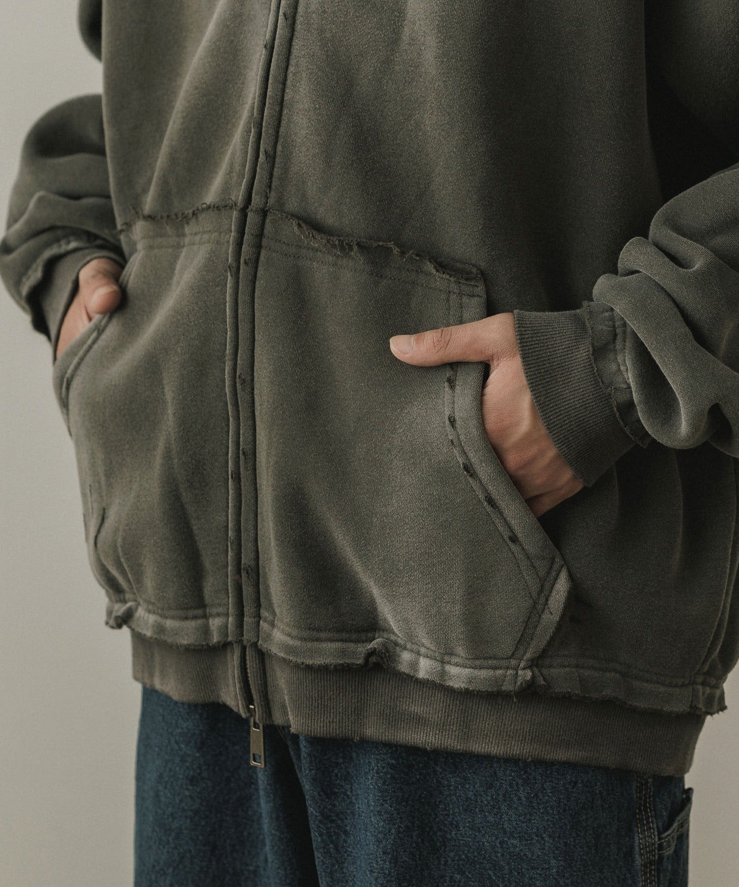 ALL RUNS / ヴィンテージ ウォッシュ加工 ダブルジップパーカー