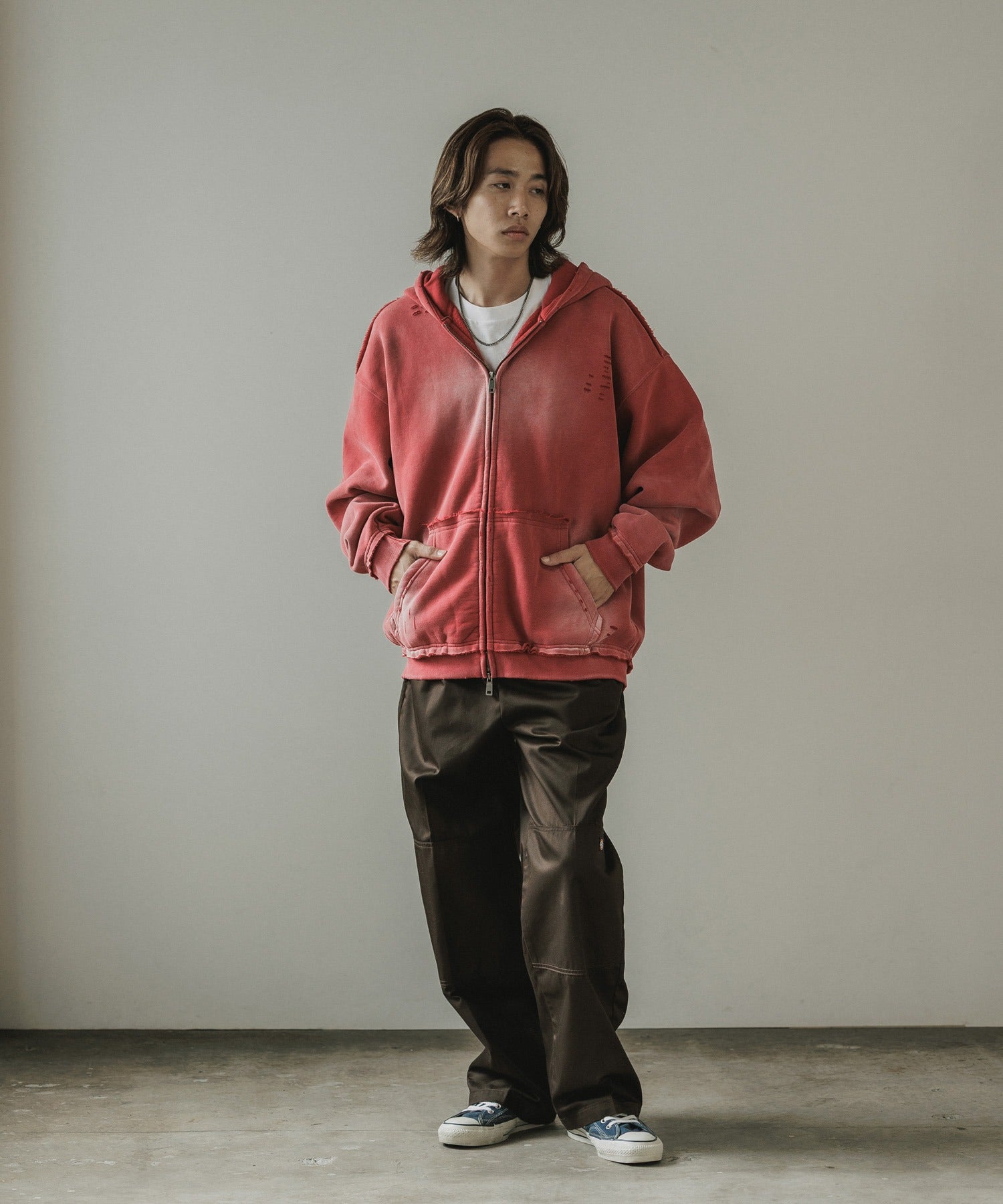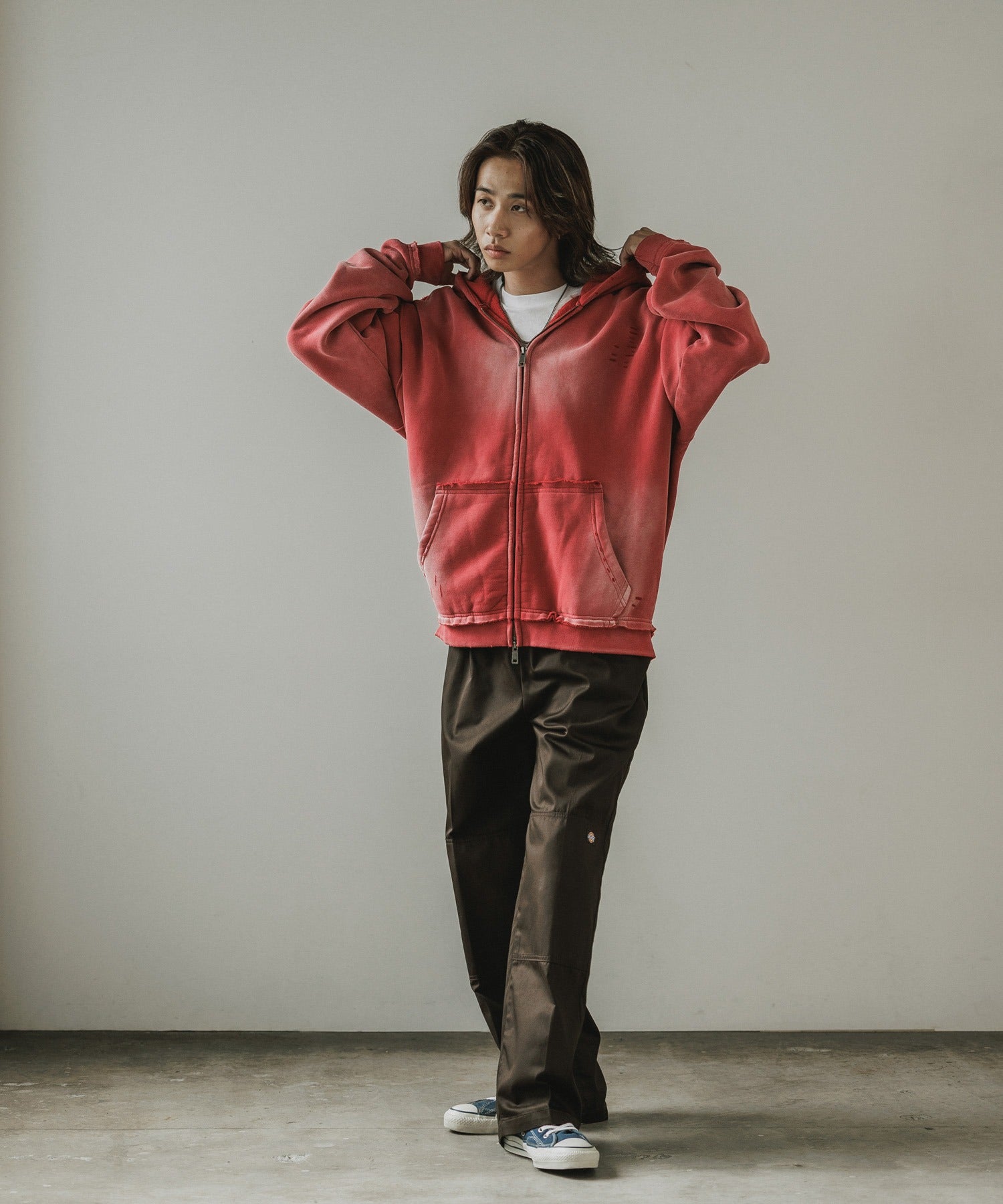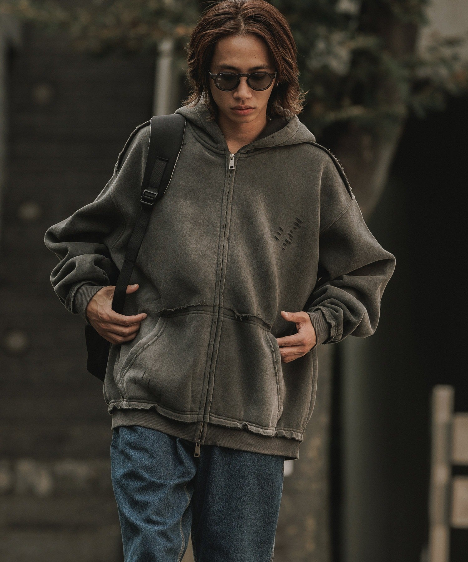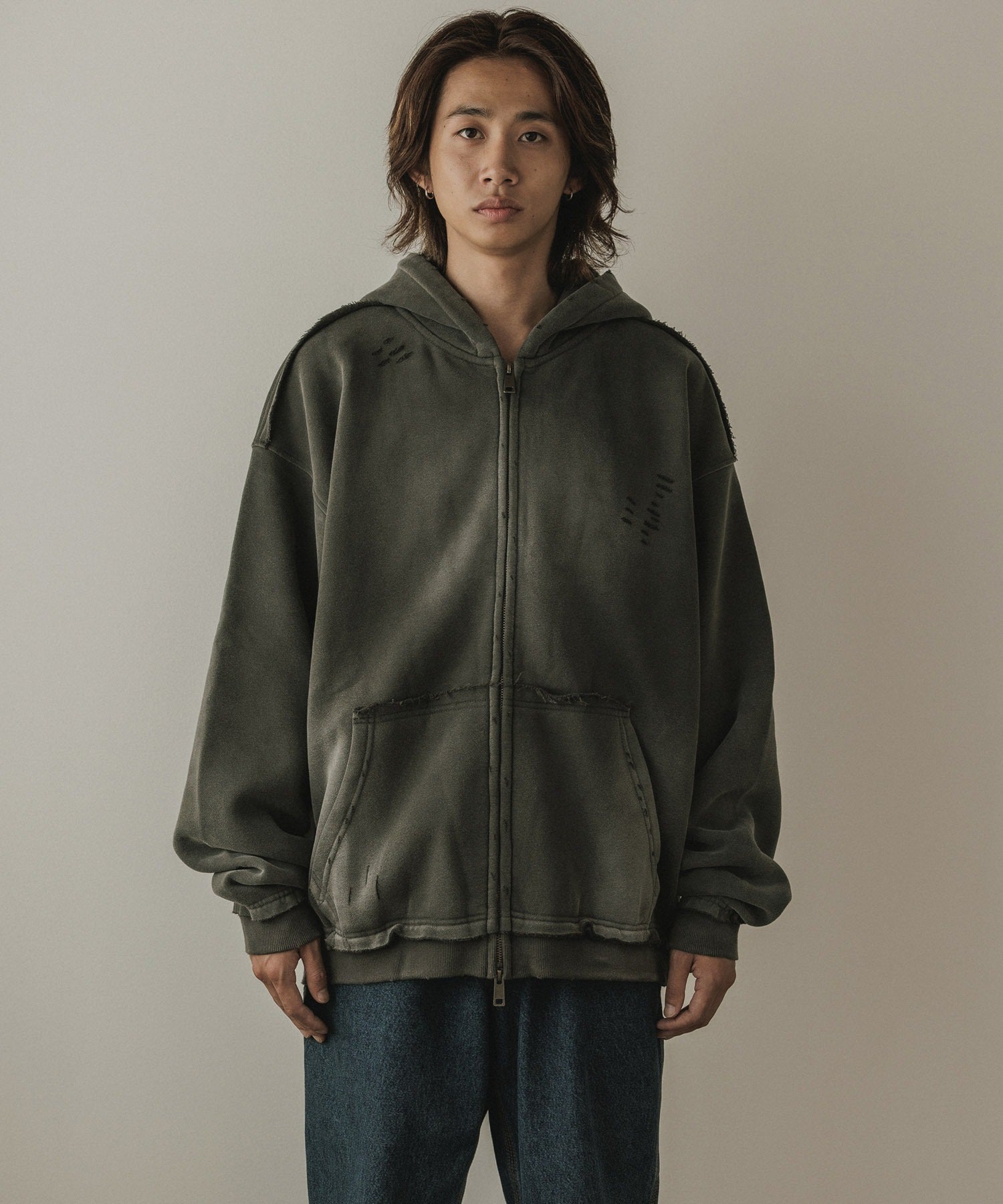 ALL RUNS / ヴィンテージ ウォッシュ加工 ダブルジップパーカー