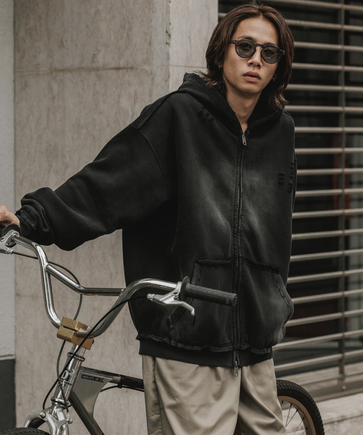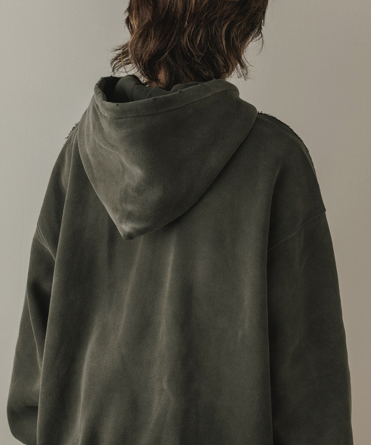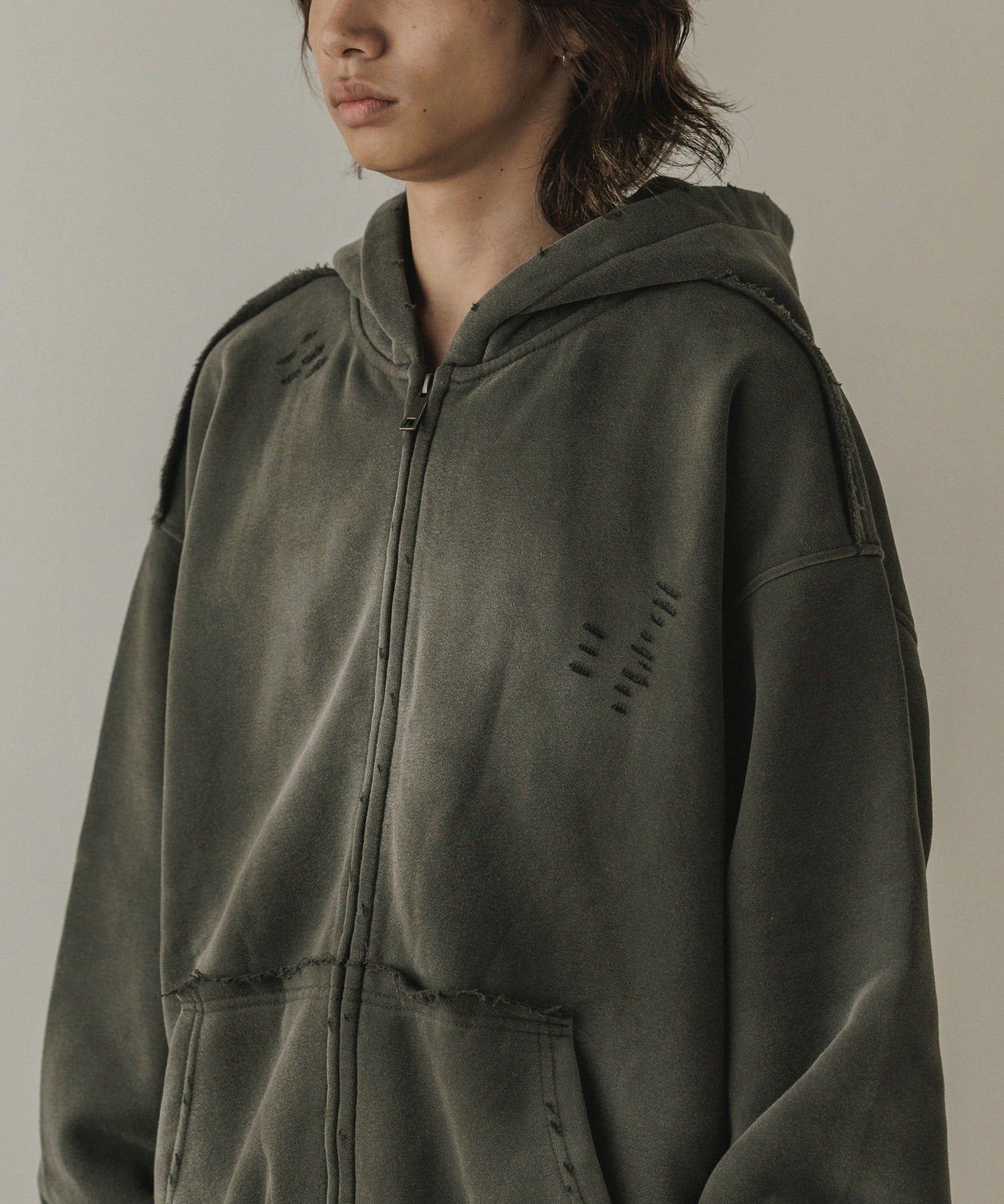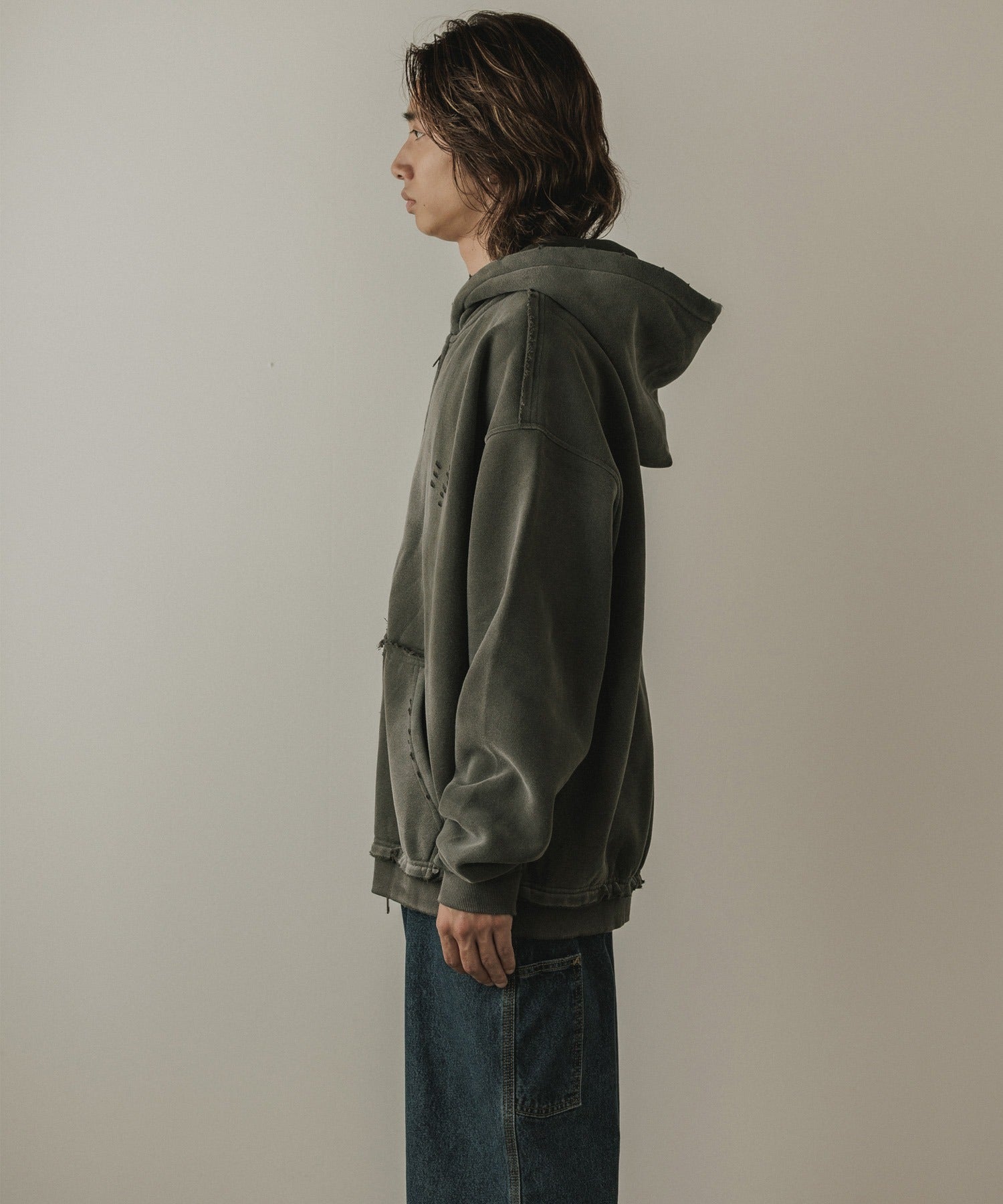 縫製部分にはカットオフデザインを使用し、独特な雰囲気を演出しています。