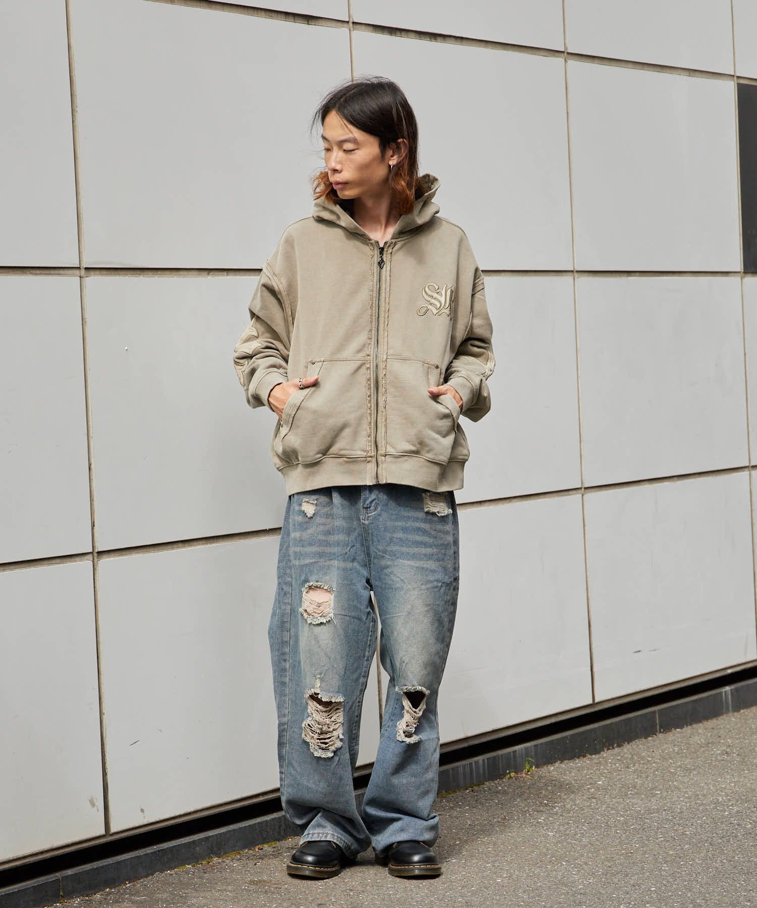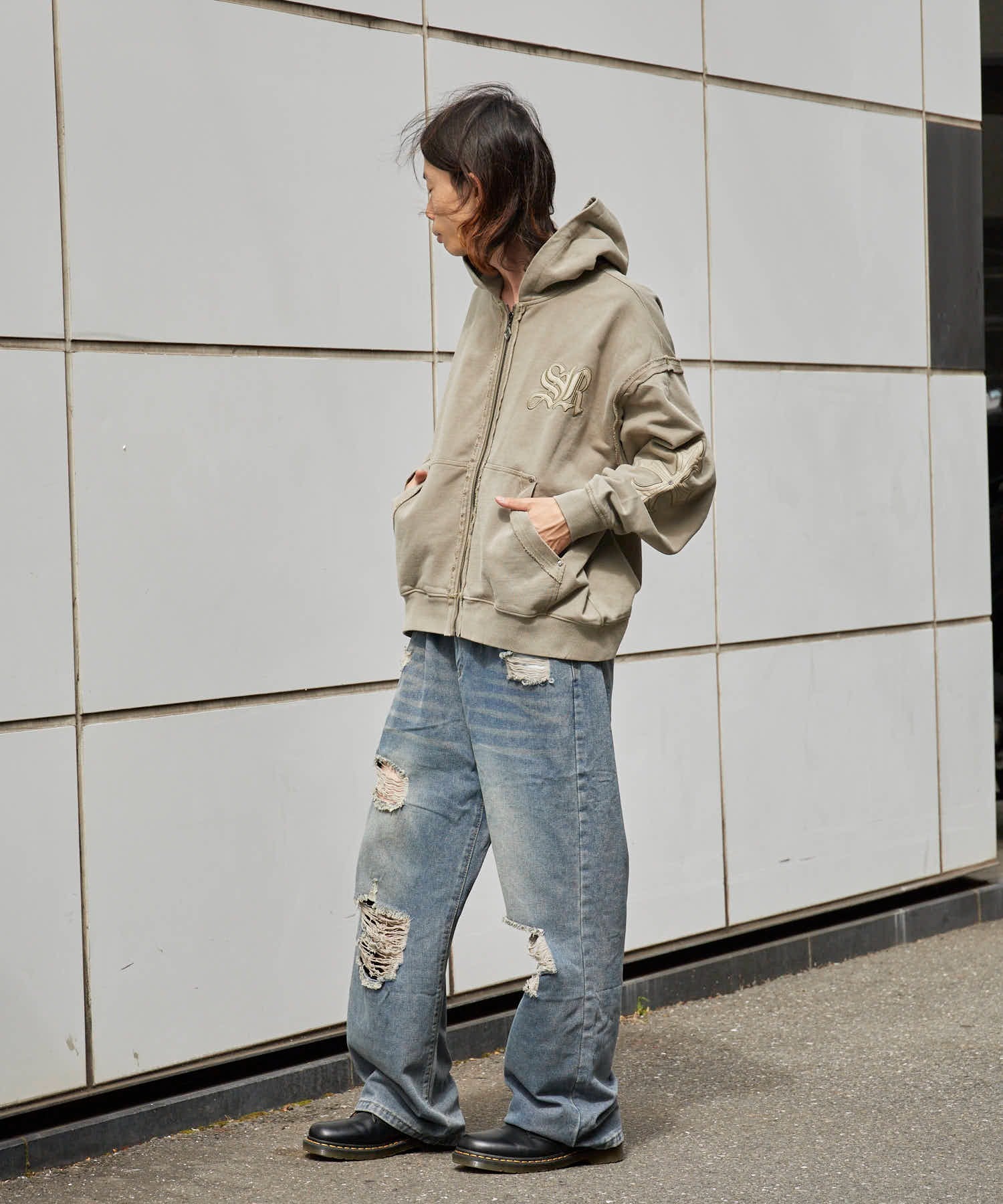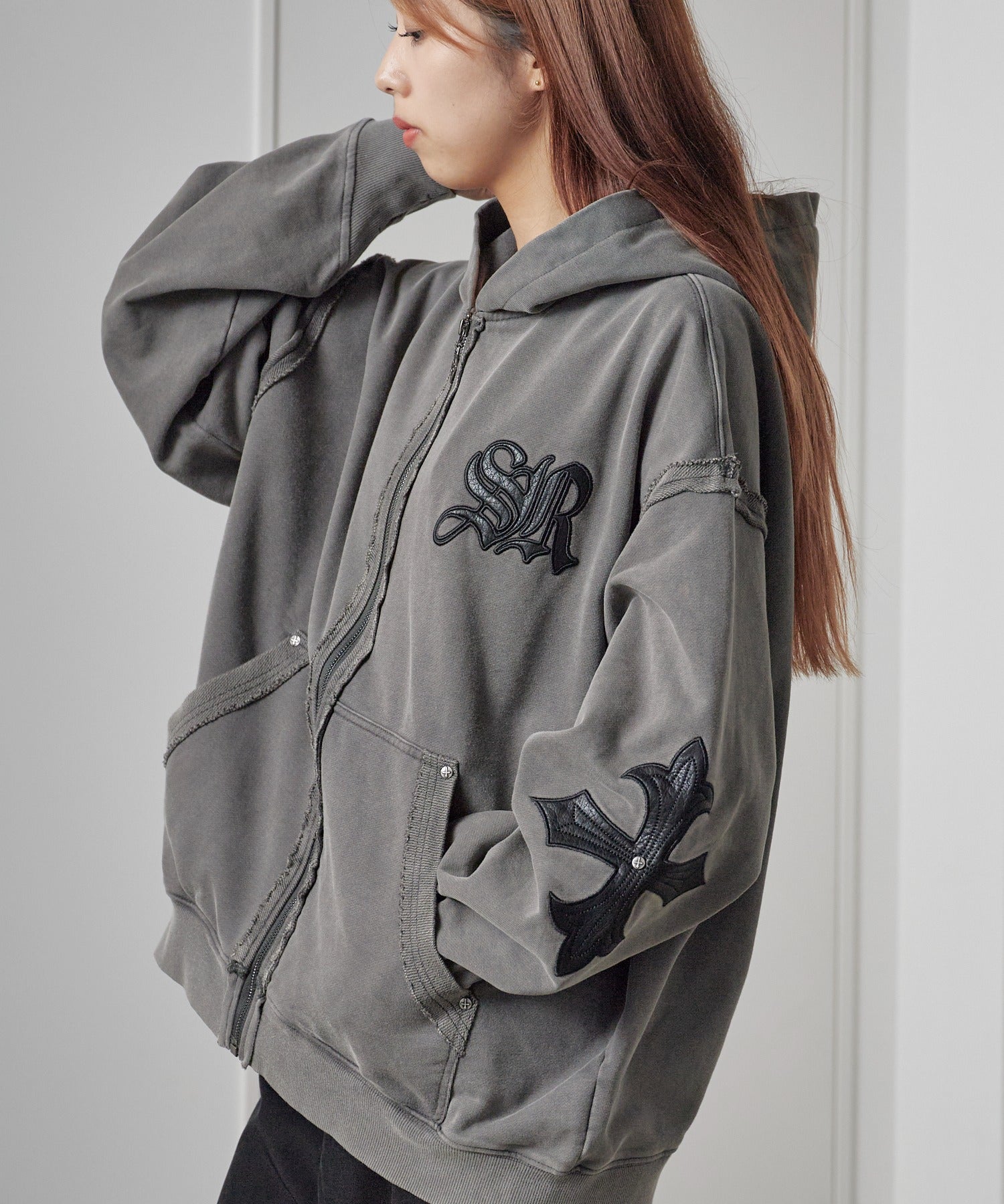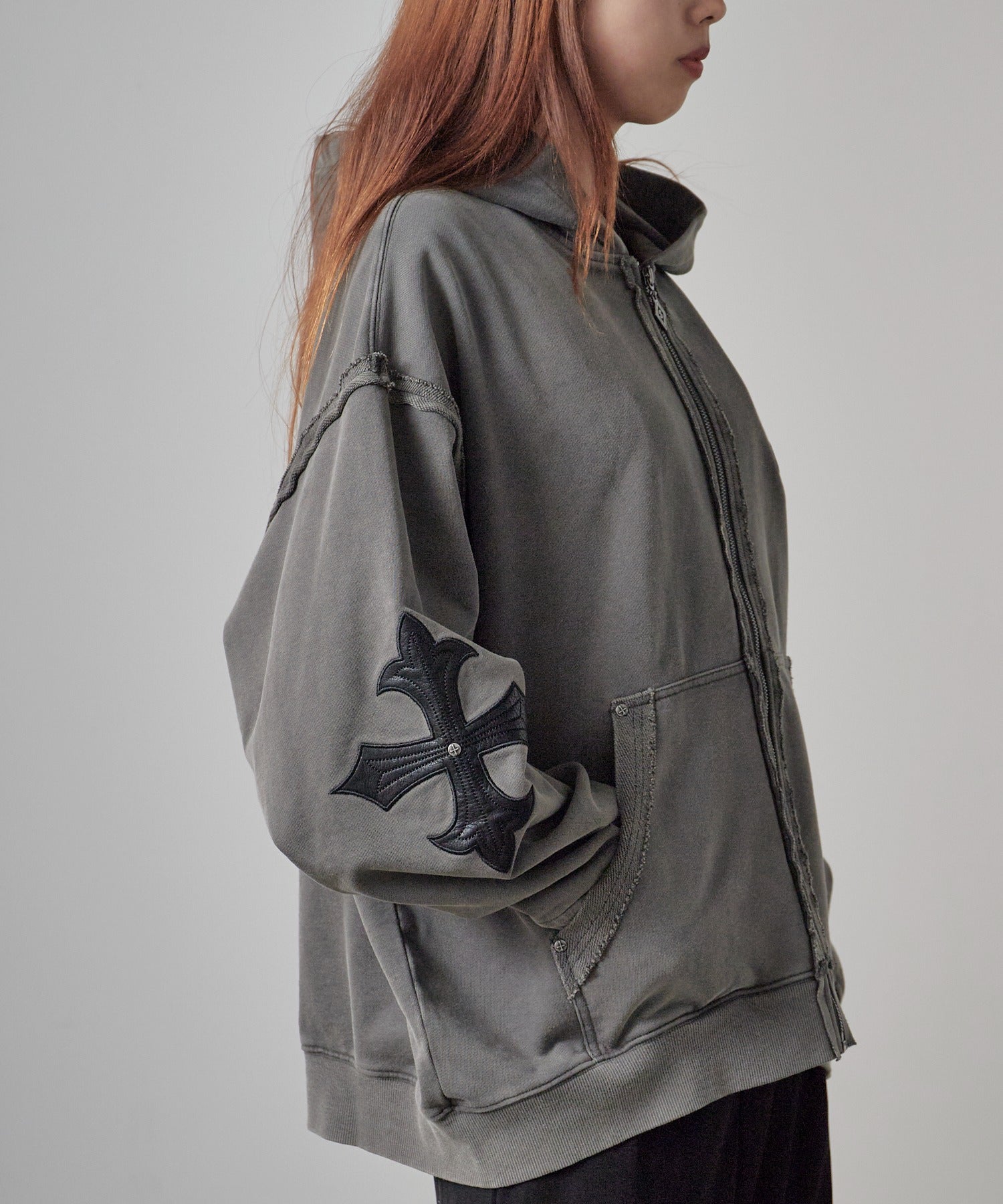 Fleur Leather Patch Zip hoodie,4580701261369,4580701261314