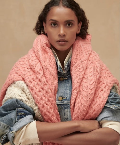 ビッグシエルエットでゆったりと着れるアイテム。奥行きのある表情感が魅力のケーブル編みを採用。背面上部には定番のラバータグ付き。